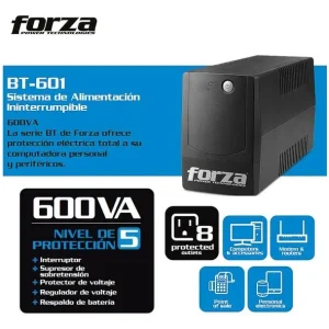 UPS Forza BT-601 600VA / 360W 8 Salidas NEMA AVR 120V Onda Modificada 11min Autonomía Protección Total- GARANTIA 1 AÑO