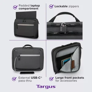 - El Targus Classic Slim Briefcase de 15.6 ”es un estuche delgado y liviano equipado para almacenar todos sus elementos esenciales mientras viaja.