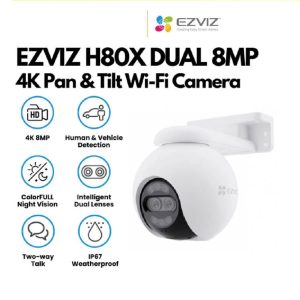 Cámara EZVIZ H80x Dual 4K Exterior PTZ WiFi 6MP + IA, Panorámica 360°, ColorFULL Nocturna, Zoom Inteligente, IP65 – CS-H80x-R100-8G82WKFL- GARANTIA 1 AÑO