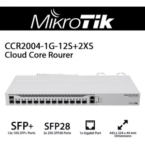 MIKROTIK Cloud Core Router 12 Puertos SFP+ 10G 2 SFP28 25G CCR2004-1G-12S+2XS