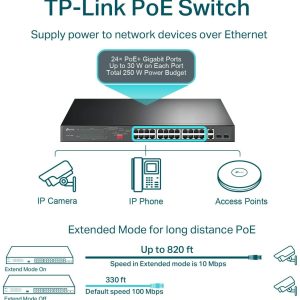 TP-LINK Switch 24 Puertos PoE+ 250W 2 Gigabit 2 SFP TL-SL1226P