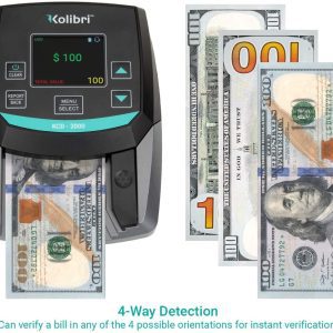 Kolibri KCD-2000 - Detector de dinero falsificado 2 en 1 y contador de billetes falsos, máquina de control de moneda falsa con detección avanzada UV, MG e infrarrojos, compacto y fácil con modos de valor y paso/falla- Protege tu negocio de dinero falsificado. Utiliza métodos avanzados de detección ultravioleta, tinta magnética, infrarrojos y tamaño para defenderse contra posibles facturas falsificadas.