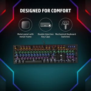 Teclado mecánico para juegos con retroiluminación RGM de tamaño completo con cable HP GK100, 4 indicadores LED, interruptores mecánicos, tapas de teclas de doble inyección y bloqueo de teclas DEBIDO A LA INESTABILIDAD CAMBIARIA POR FAVOR CONSULTE CON NUESTROS EJECUTIVOS ONLINE PRECIO Y STOCKHP Gaming Keyboard and Mouse Combo RGB HPKM300F