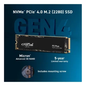 🚀 Crucial SSD P3 Plus 1TB M.2 NVMe Gen4 CT1000P3PSSD8 – Hasta 5000MB/s, 3D NAND Micron, PCIe 4.0, Ultra Rápido y Eficiente