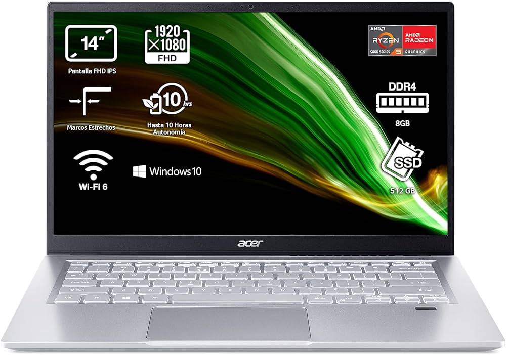ACER PORTÁTIL SWIFT 3 SF314-43-R2YY AMD RYZEN 5 5500U 8GB 512GB SSD 14″ WIN 10 HOME INGLES SILVER
