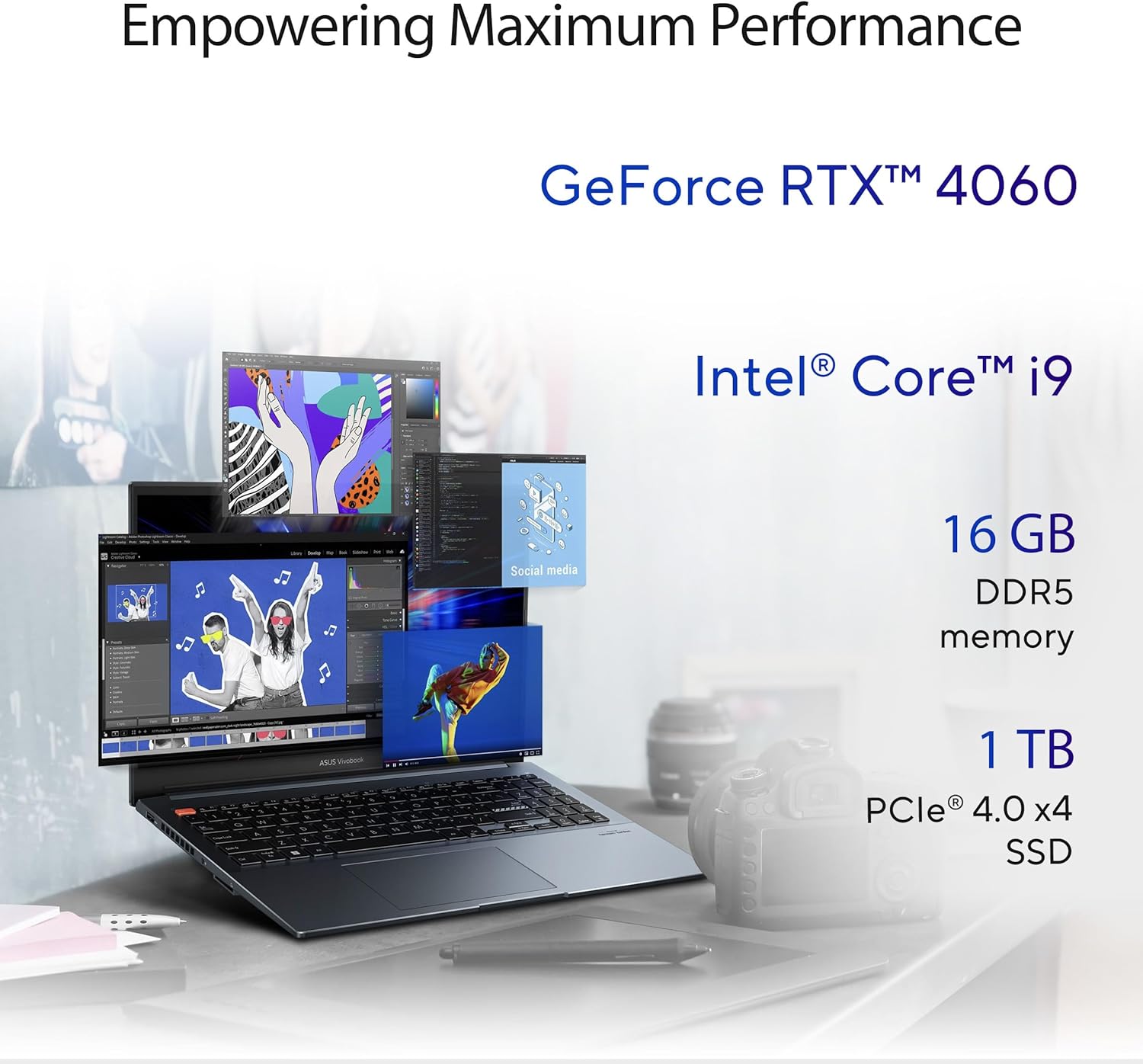 ASUS Portátil VivoBook Pro 16, pantalla de 16 pulgadas, CPU Intel Core i9-13900H, GPU NVIDIA® GeForce® RTX™ 4060, 16 GB de RAM, SSD de 1 TB, Windows 11