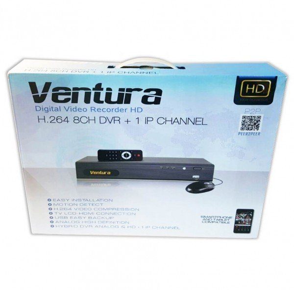 DVR 8 CANALES VENTURA AHD HIBRIDO 720P H.264+1 CANAL IP VE08