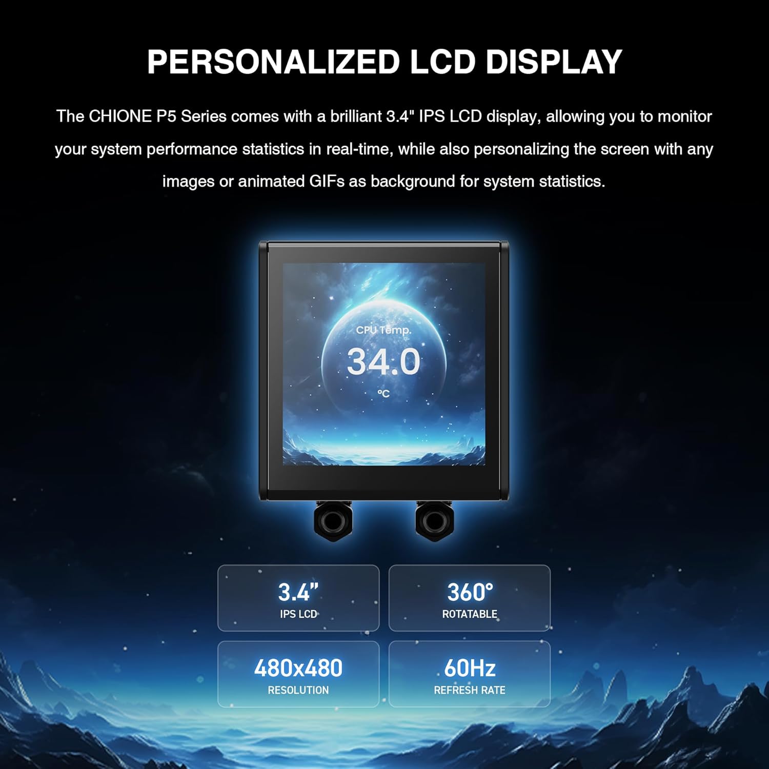 Enfriador Líquido GAMDIAS CHIONE P5-240 WH (CHIONE P5-240 WH): Rendimiento Potente y Estilo de Pantalla Digital