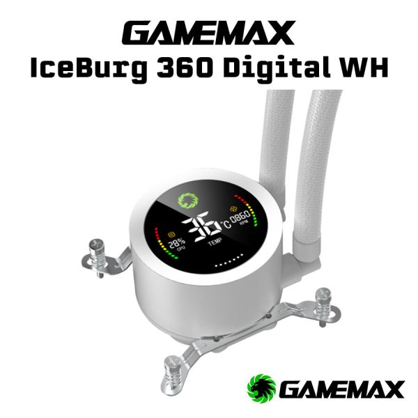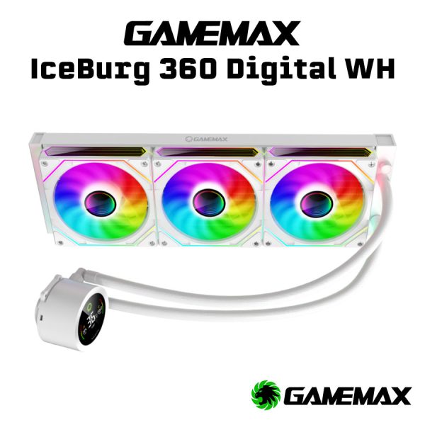 GameMax ICEBURG 360 Infinity ARGB Blanco, enfriador líquido AIO de 360mm compatible con Intel LGA1700/1851 y AMD AM5. Más detalles en la página oficial de GameMax.