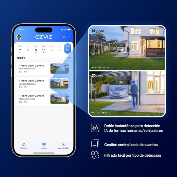 - Seguridad en exteriores: Monitorea tu jardín, patio, o la entrada de tu casa con una sola cámara de alta resolución.