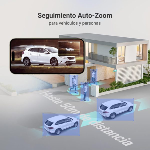 - Detección inteligente y seguimiento automático: La cámara utiliza tecnología de IA para detectar la forma humana y los vehículos, y los sigue automáticamente. Esto minimiza las falsas alarmas provocadas por hojas o animales.