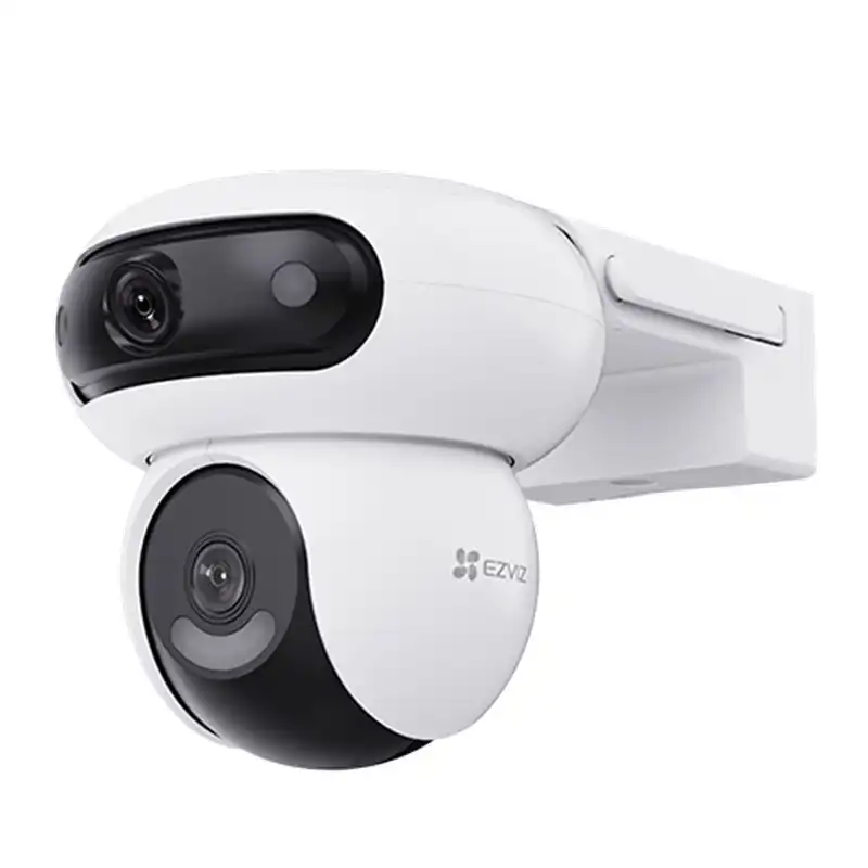 La EZVIZ H9c Dual 2K+ es una cámara de seguridad de última generación con doble lente 2K+ + 2K+, que alcanza una resolución total de 8MP. Su sistema dual combina un lente gran angular fijo con un teleobjetivo motorizado PT, logrando una cobertura completa de 360° sin puntos ciegos.