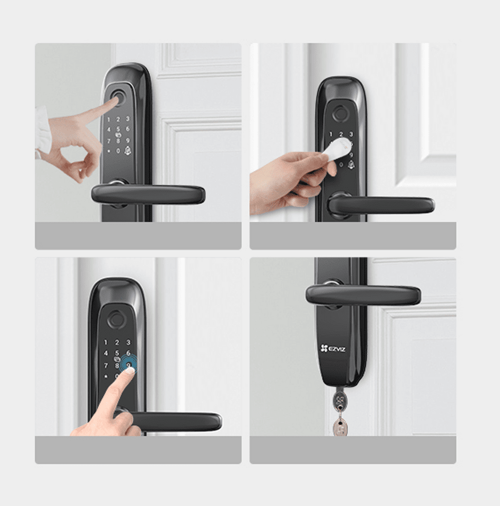 La EZVIZ CS-L2-11FCP es una cerradura inteligente que ofrece mĂşltiples mĂŠtodos de acceso para tu hogar u oficina, combinando seguridad avanzada con conveniencia. Permite desbloquear la puerta con tu huella dactilar, una tarjeta RFID, un cĂłdigo PIN, una llave tradicional o a travĂŠs de la aplicaciĂłn mĂłvil de EZVIZ.