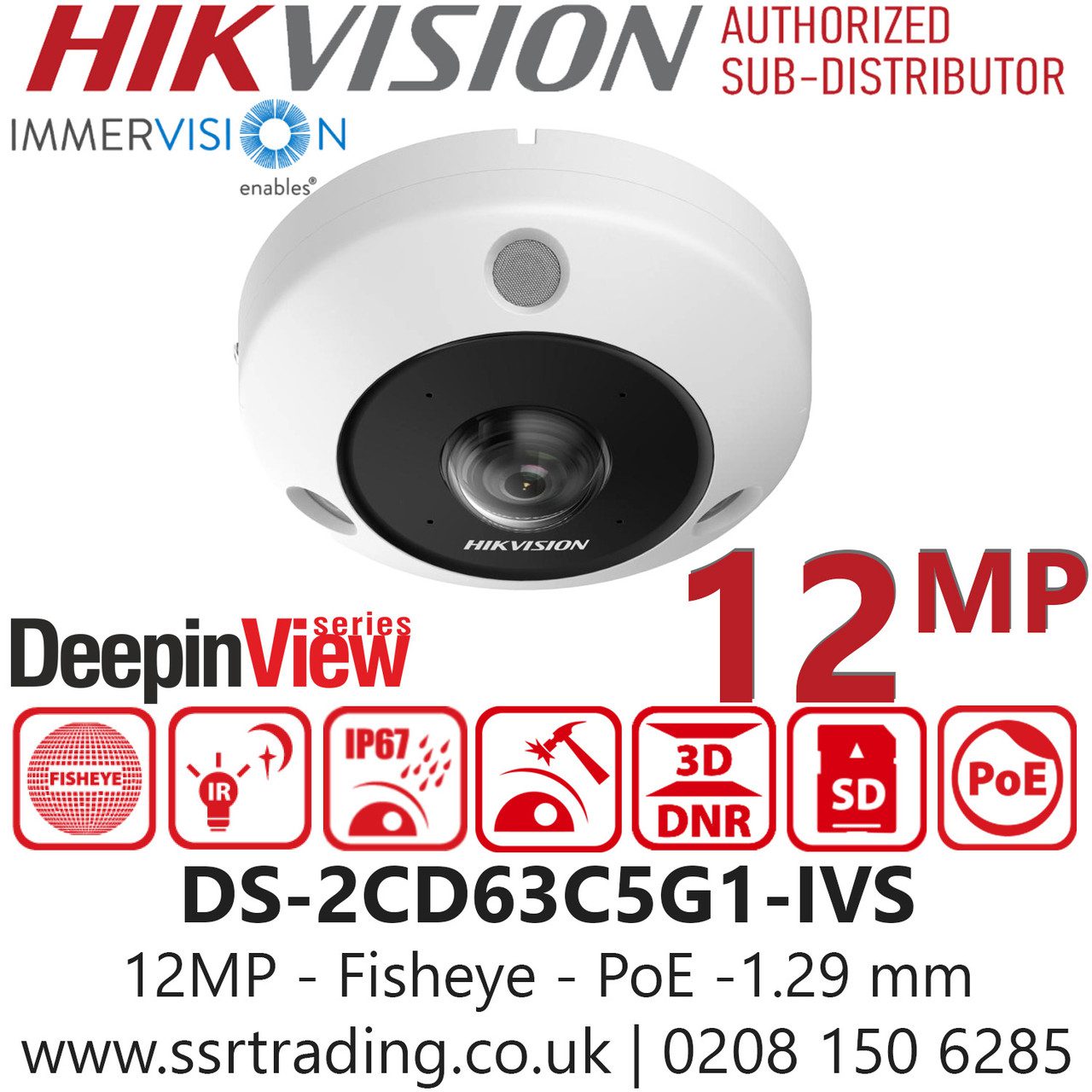 HIKVISION CÁMARA IP 12MP FISHEYE PANORAMICA 180° 360° DEEPINVIEW DS-2CD63C5G1-S/RC