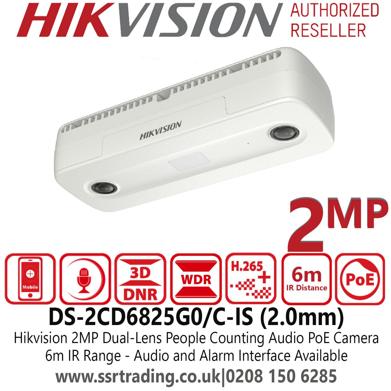 La cámara Hikvision DS-2CD6825G0/C-IS es una cámara IP dual de 2MP con doble lente de 2 mm, visión nocturna IR de 6 metros y tecnología de conteo de personas. Ideal para análisis de flujo en entradas, pasillos y zonas comerciales.