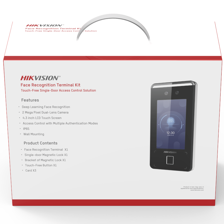 El DS-KAS541 es un kit de terminal de reconocimiento facial que proporciona una solución de control de acceso de puerta única sin contacto. El kit contiene: