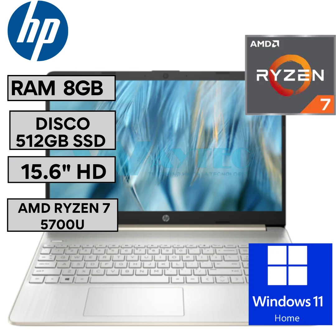 HP Notebook 15-EF2505LA con procesador Ryzen 7-5700U, 8GB de RAM y 512GB de almacenamiento SSD, con sistema operativo Windows 11