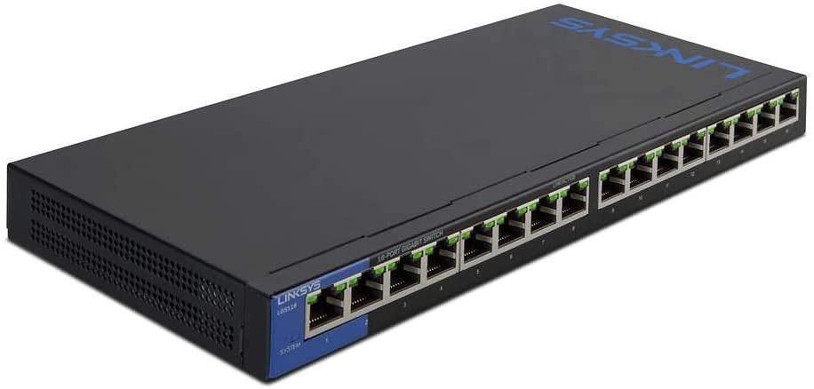 Linksys LGS116P – Unmanaged Switch Gigabit PoE+ de Escritorio para Empresas (16 Puertos, 1000 Mbps, Puertos detección automática, optimización del Rendimiento, Plug and Play), Negro