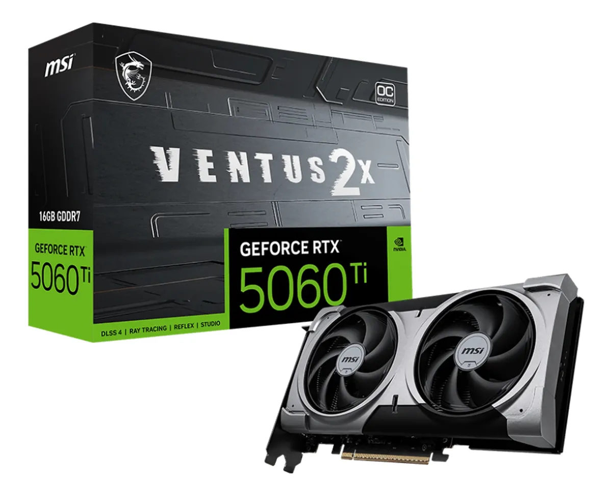 MSI GeForce RTX 5060 Ti VENTUS 2X OC PLUS: Tarjeta Gráfica 16GB GDDR7 con DLSS 4, Ray Tracing y PCIe 5.0 para Gaming 1440p y Creación Profesional