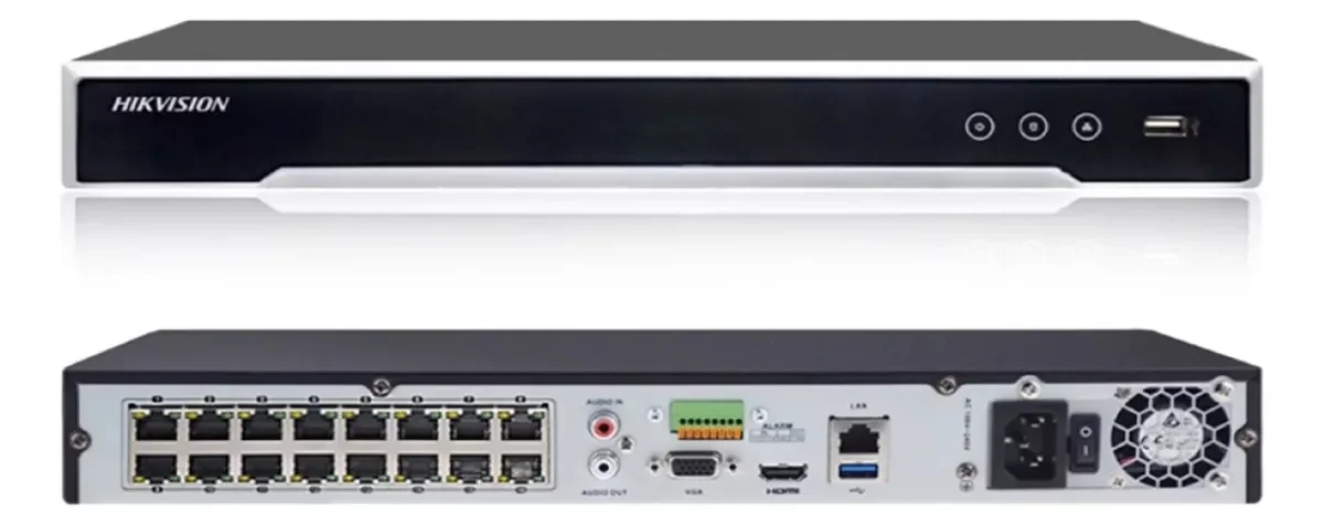 El Hikvision NVR DS-7616NXI-K2/16P es un grabador de video en red (NVR) de la serie Pro, diseñado para sistemas de videovigilancia IP de alto rendimiento. Se destaca por sus puertos PoE integrados y su capacidad de Análisis de Video basado en Inteligencia Artificial (AI) AcuSense para minimizar falsas alarmas.