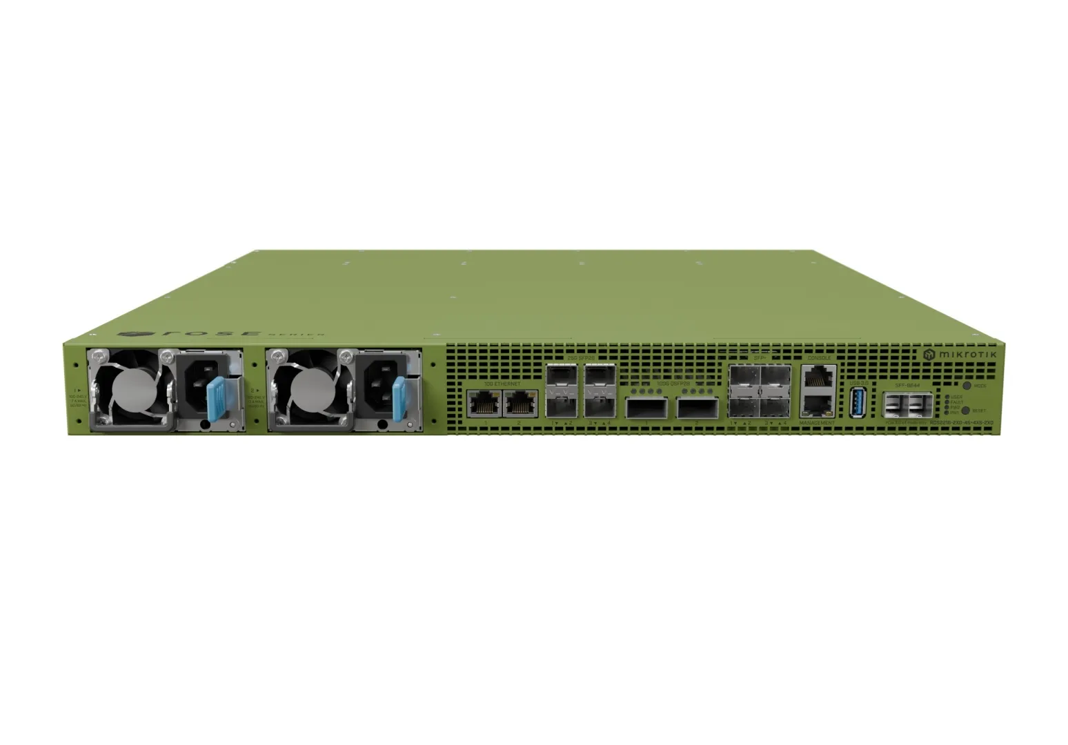 El MikroTik ROSE Data Server es un dispositivo de nivel empresarial que redefine la infraestructura de red al combinar las funciones de un servidor de almacenamiento, un dispositivo de red de alto rendimiento y una plataforma para contenedores en una única unidad de rack (1U). Funciona con una edición especial de RouterOS optimizada para el almacenamiento y la computación. Su potente CPU de 16 núcleos y sus 20 bahías para discos NVMe U.2 lo convierten en una solución integral para entornos de misión crítica.