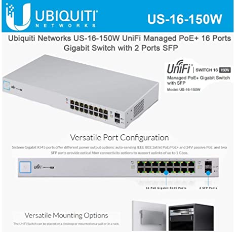 ¡Oferta! Ubiquiti SWITCH 16P POE+ US-16-150W | Switch de Red con Alimentación