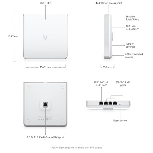 Ubiquiti U6 Enterprise In-Wall Wireless Tri-Band Wi-Fi 6E U6-ENTERPRISE-IW-US