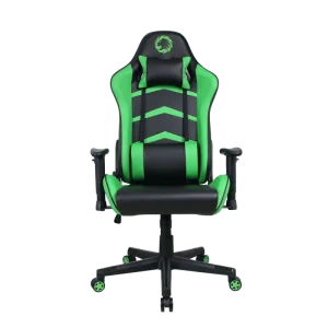 Silla gamer GameMax GCR09 GR con diseño ergonómico tipo racing, respaldo reclinable, elevador de gas, tapizado en cuero sintético y base resistente. Ideal para gaming, oficina y home office.