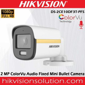 Hikvision CAMARA TIPO BULLET HD MICROFONO 2MP DS-2CE10DF3T-PFS 2.8MM