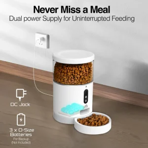 Alimentador Inteligente para Mascotas ARGOMTECH 4L (ARG-SV-8071WT) | Comedero Automático con Cámara 3MP, Visión Nocturna, Audio Bidireccional, Wi-Fi + Bluetooth, Control por App y Porciones Programables- GARANTIA 1 AÑO