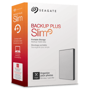 - Almacene y acceda a 2 TB de fotos y archivos en movimiento con Seagate Backup Plus Slim, un disco duro externo para Mac y Windows