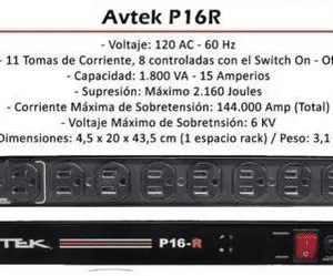 - 11 Tomas de Corriente, de las cuales 8 estan controladas por el Switch ON/OFF – 3 tomas siempre encendido