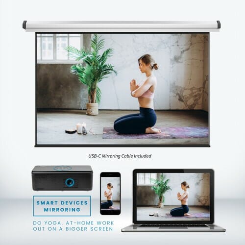 Proyecte casi cualquier cosa donde quiera con el proyector portátil AAXA Technologies BP1 100-Lumen nHD LED DLP . Puede proyectar imágenes de hasta 60″ en diagonal y tiene una batería incorporada, que también cargará su dispositivo móvil compatible. La tecnología Bluetooth le permite usar el BP1 como un altavoz portátil con los altavoces duales integrados de 6 W. El proyector tiene una entrada HDMI , una ranura microSD y un puerto USB con un reproductor multimedia integrado para reproducir sus imágenes, videos y música almacenados digitalmente. Un puerto USB tipo C le permite duplicar el contenido de su dispositivo móvil compatible.