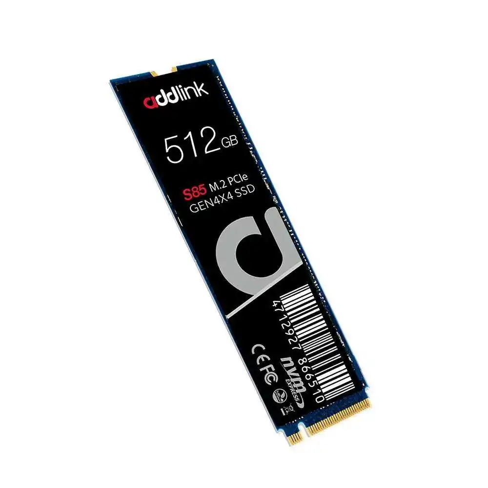 Marca: Addlink Serie: S85 Modelo: AD512GBS85M2P Capacidad: 512 GB Formato: M.2 2280 Interfaz: PCIe Gen4x4 NVMe 1.4 Uso recomendado: Gaming, edición de video, productividad intensiva