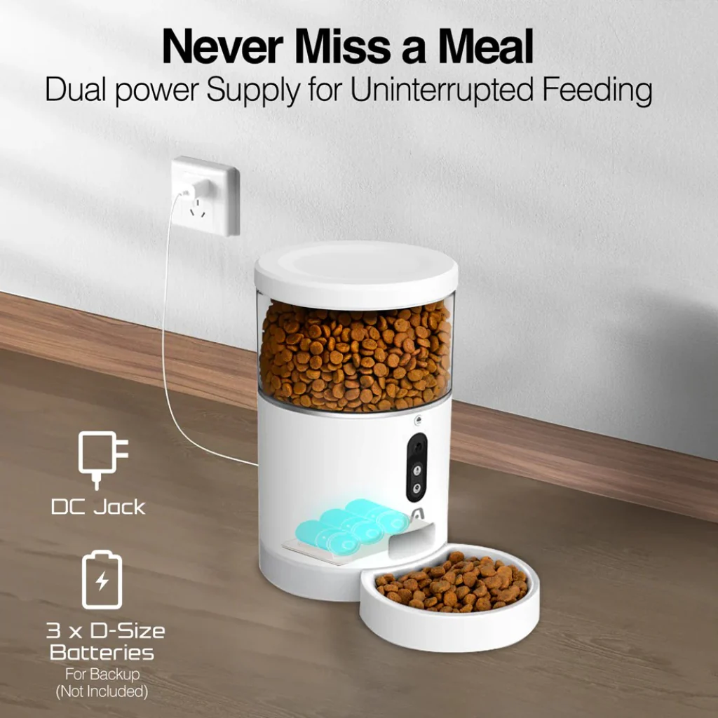 - Doble fuente de energía: Funciona con una conexión a la corriente y tiene un respaldo de batería para asegurar que tu mascota sea alimentada incluso si hay un corte de energía.