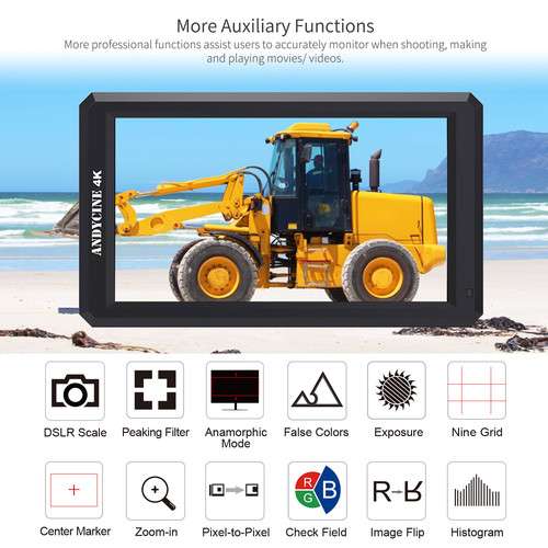 Utilice el monitor en cámara A6 de 5,7″ Full HD HDMI con soporte 4K de ANDYCINE para ver sus imágenes cuando grabe con su cámara sin espejo, DSLR o videocámara pequeña. Este monitor de resolución nativa de 1920 x 1080 le permite ver con precisión las imágenes que se están capturando. y para comprobar metraje, exposición y otros parámetros. Equipado con una única entrada HDMI, el A6 admitirá resoluciones de vídeo de hasta DCI 4K.