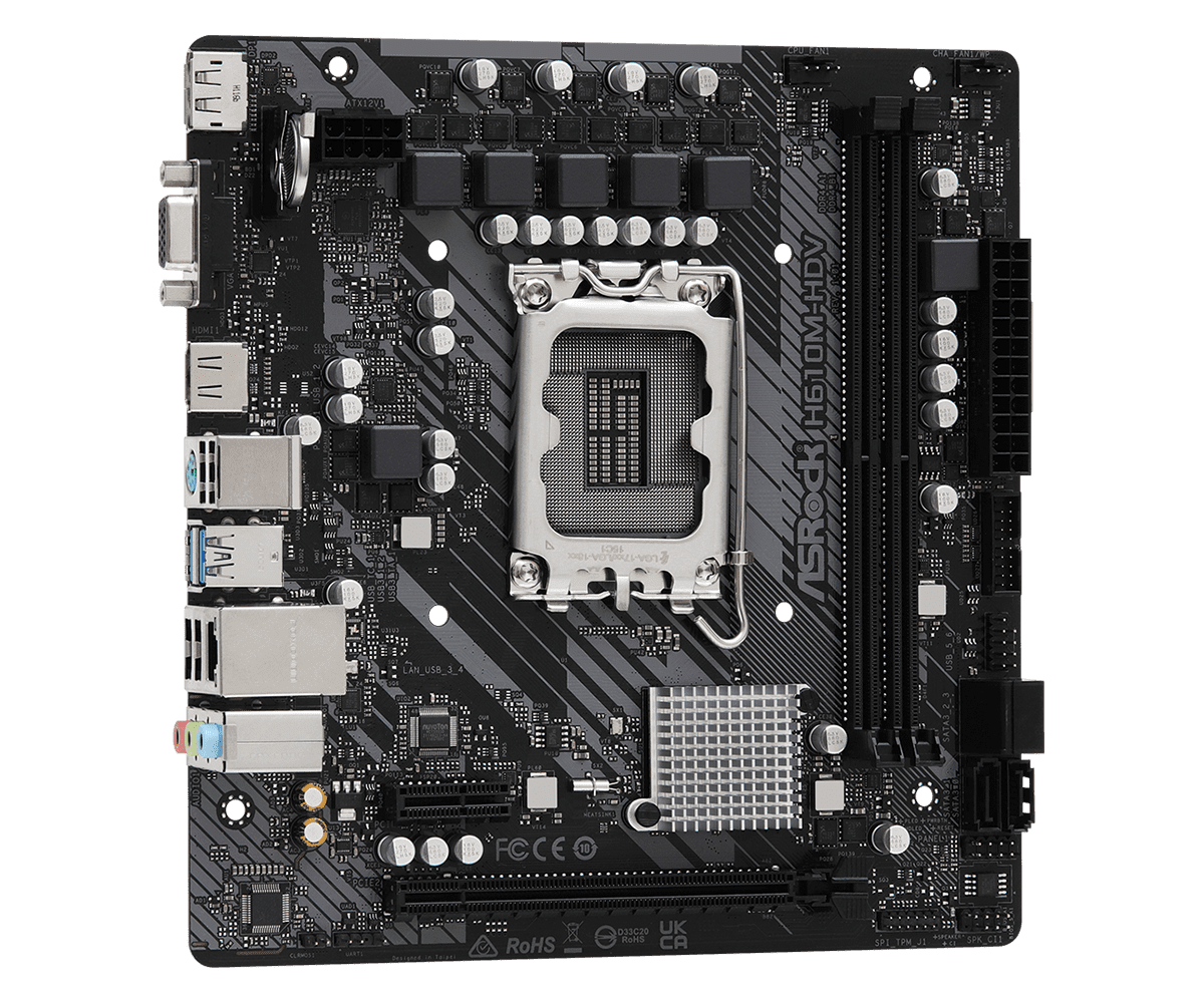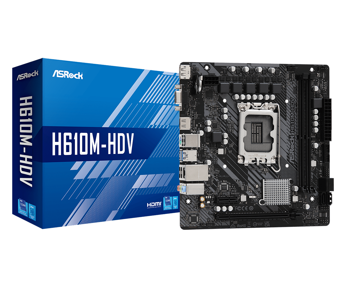 La ASRock H610M-HDV es una placa base Micro-ATX (MATX) diseñada para ofrecer un excelente equilibrio entre rendimiento y precio. Es una excelente opción para construir un PC de gama media, ya sea para juegos casuales, tareas de oficina o creación de contenido.
