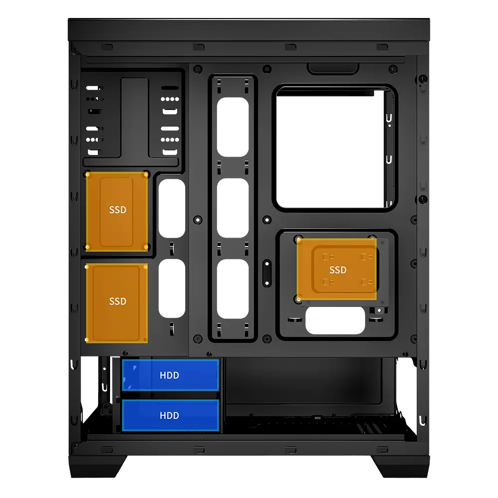 El Azza Crimson 211G CSAZ-211G cuenta con cuatro ventiladores LED RGB preinstalados para ofrecer una excelente refrigeración y una iluminación espectacular. Además, hay espacio para otros tres ventiladores, lo que permite una mayor personalización de la refrigeración. El estuche también cuenta con un controlador de ventilador integrado y una iluminación RGB controlada por software para ajustar los efectos de iluminación y velocidad de los ventiladores.