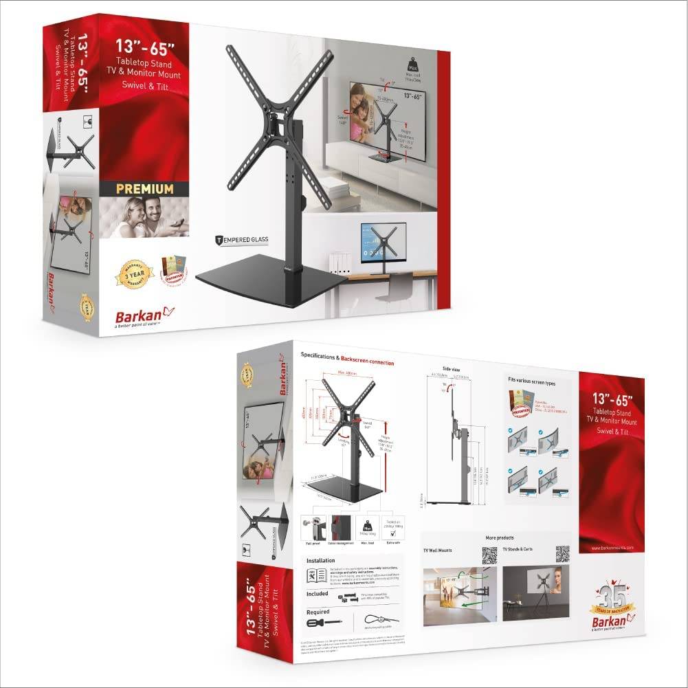 Barkan Soporte para TV de mesa, base de soporte de TV giratoria e inclinable de 29 a 58 pulgadas, soporta hasta 55 libras, patentado, vidrio templado, 3 años de garantía, se adapta a LED OLED LCD, negro