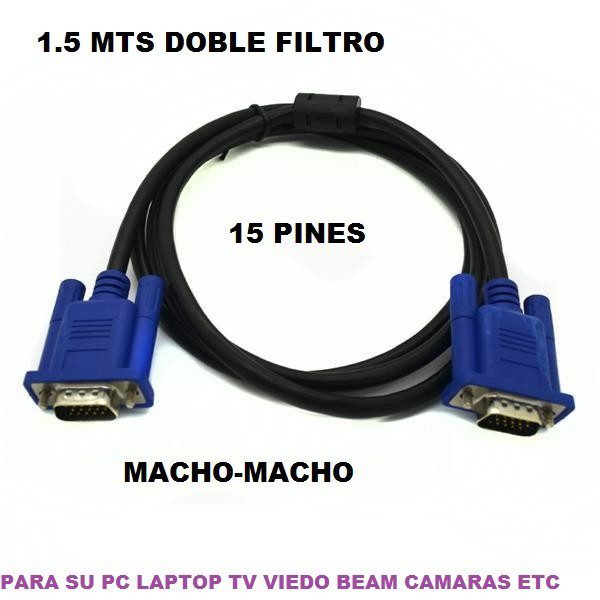 SKU: CABLE VGA 1.5 METROS MACHO A MACHO 15 PINES Categoría: