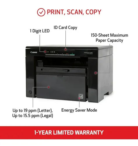 Reseña del Producto: La Canon imageCLASS MF3010 MF3010VP es una impresora multifuncional diseñada para ofrecer alta eficiencia y ahorro en entornos empresariales y domésticos. Con su capacidad de impresión rápida y su sistema de tóner de alta capacidad, es una opción ideal para oficinas y hogares. Su conectividad USB y su compatibilidad con aplicaciones de impresión móvil garantizan una experiencia de usuario fluida y productiva. Además, su eficiencia energética y su capacidad de impresión de alto volumen la convierten en una opción sostenible y económica.