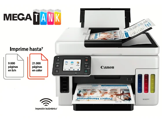 La Canon MAXIFY GX6010 es una multifuncional de tinta continua diseñada para satisfacer las necesidades de pequeñas oficinas y grupos de trabajo que requieren de un alto volumen de impresión a un bajo costo por página.