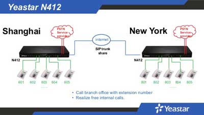 Yeastar N412 es un PBX flexible y modular que proporciona una plataforma de comunicación para mejorar la productividad de la pequeña empresa. Yeastar N412 puede manejar hasta 4 líneas CO / BRI, hasta 12 extensiones analógicas, 8 extensiones SIP, y 4 troncales SIP.
