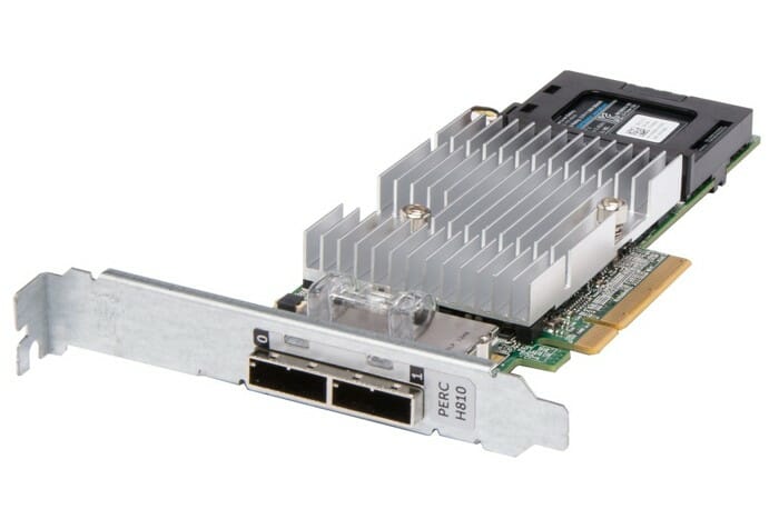 La controladora RAID Dell ™ PowerEdge ™ PERC H810 es para servidores Dell seleccionados de 12.ª generación. La PERC H810 contiene todas las características de la H710P, con una diferencia importante: la H710P es para las unidades internas de su servidor, hasta 32 de ellas, mientras que la H810 puede conectarse a JBOD, ejecutando hasta 192 unidades. La opción RAID externa se utiliza para conectar el servidor host a los gabinetes PowerVault MD1220 y / o MD1200. La PERC H810 aprovecha el potencial de las SSD para brindar un rendimiento insuperable y una confiabilidad de clase empresarial. La PERC H810 ofrece expansión JBOD externa usando hasta 192 3 Gb / sy 6 Gb / sy discos duros o SSD SAS.