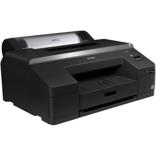 Capaz de trabajar con una variedad de medios de hasta 17″ de ancho, la SureColor P5000 es una excelente opción de formato ancho para los usuarios que buscan imprimir grandes. Cuenta con cambio automático entre la alimentación de papel en rollo y un casete de papel frontal para trabajar con múltiples tipos de medios sin necesidad de cambiarlos físicamente. Además, tiene un cortador giratorio de alta velocidad para ayudar con los medios en rollo. Además, la ruta del rollo de carga superior admite la impresión sin bordes en 8″, 10″, 11″, 13″. , 14″, 16″, 16,5″ y 17″ de ancho. Además, las hojas de papel se pueden cargar en el casete frontal o en una sola hoja de carga superior y ruta directa para papel de hasta 1,5 mm de grosor.