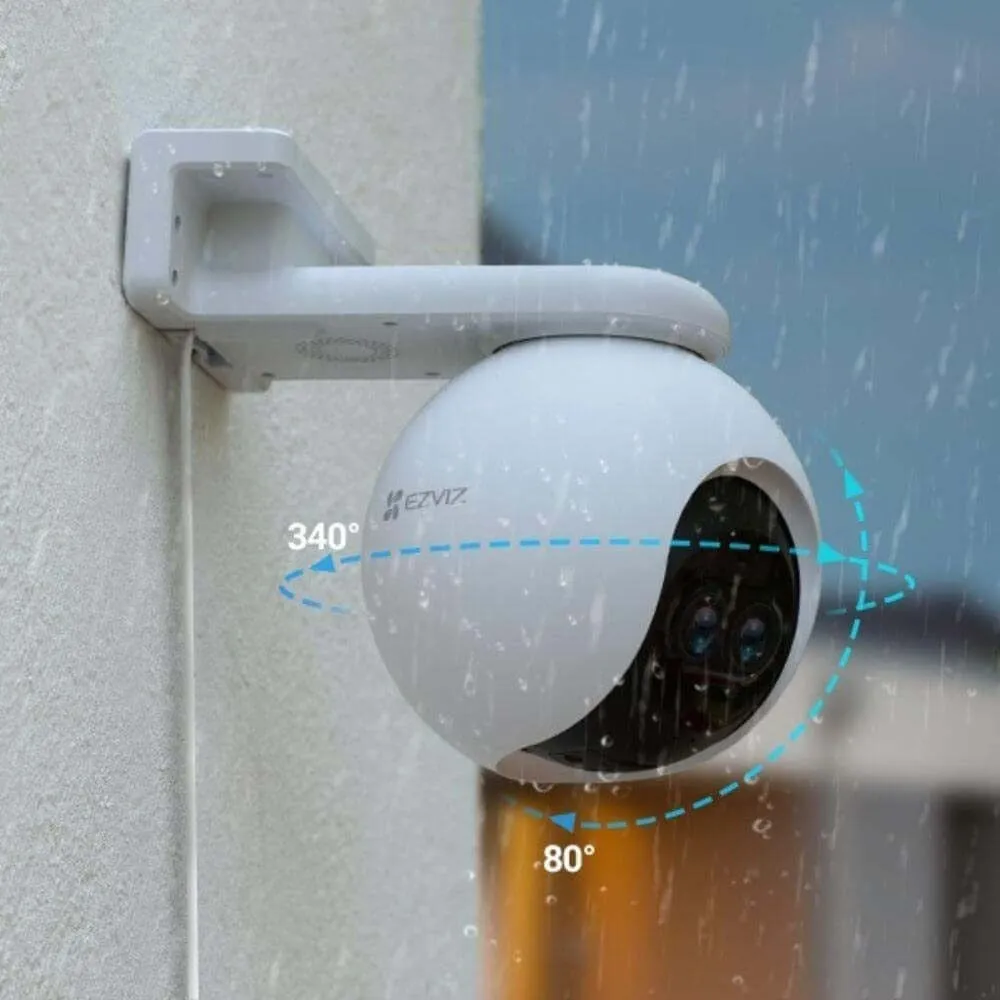 La EZVIZ C8PF es una cámara de seguridad Wi-Fi para exteriores, diseñada para ofrecer una vigilancia avanzada con funciones de giro (Pan), inclinación (Tilt), y un zoom híbrido de 8x. Su certificación IP65 la hace resistente al agua y al polvo, lo que la convierte en una excelente opción para exteriores. Es una solución ideal para monitorear jardines, patios, estacionamientos o cualquier área exterior que necesite una vigilancia detallada.