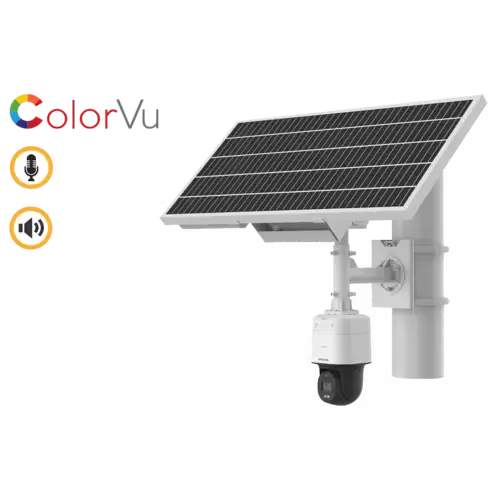 El KIT SOLAR IP 4MP ALL IN ONE es una solución de vigilancia completa y autónoma, ideal para ubicaciones sin acceso a la red eléctrica o Wi-Fi tradicional. Este kit integra una CÁMARA PT COLORVU de alta resolución de 4MP, que garantiza imágenes a color incluso con poca luz gracias a su iluminación mínima de 0.004 LUX @ F1.4. El sensor es un CMOS 1/2.8′ con escaneo progresivo y cuenta con un LENTE de 4 MM.