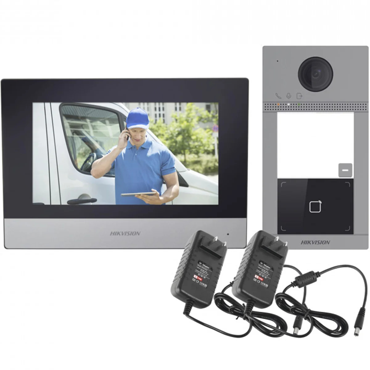 El Hikvision DS-KIS604-P(B) es un kit de videoportero IP diseñado para ofrecer una solución de seguridad y comunicación visual de alta calidad para hogares y pequeñas empresas.