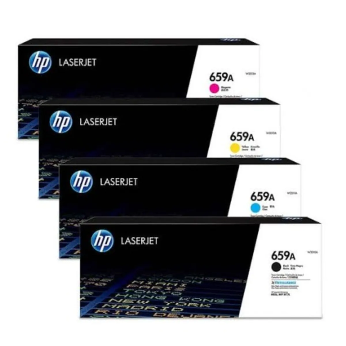 • HP 659A (W2011A – Cian): Capacidad estándar, con un rendimiento de ~13.000 páginas.