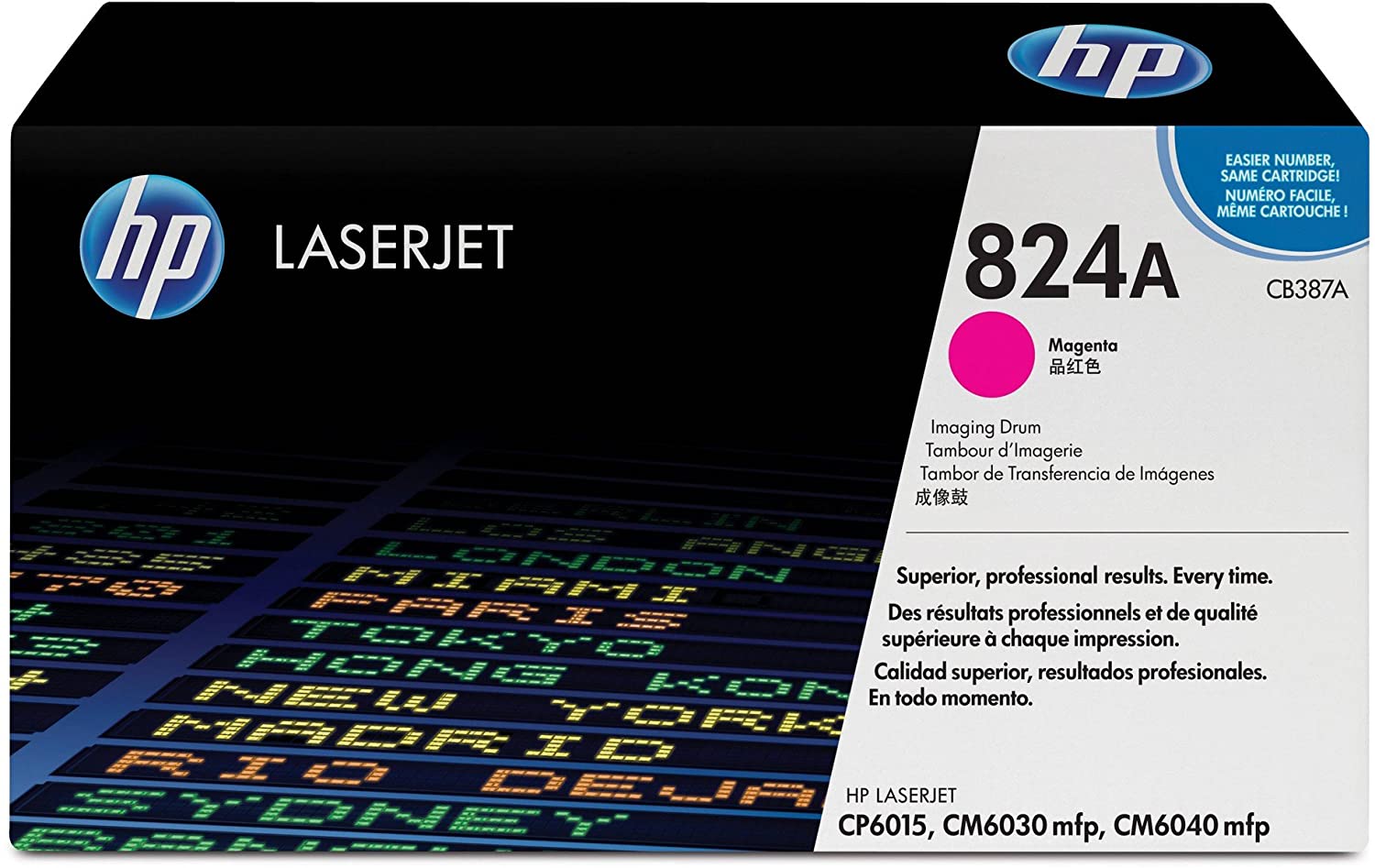 • Los tambores de tóner HP 824A (CB387A) funcionan con: HP Color LaserJet CP6015, CM6030, CM6040.